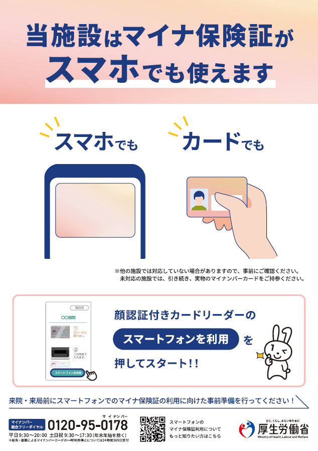 当院は、令和7年11月13日(木)よりスマートフォンのマイナ保険証に対応しております。